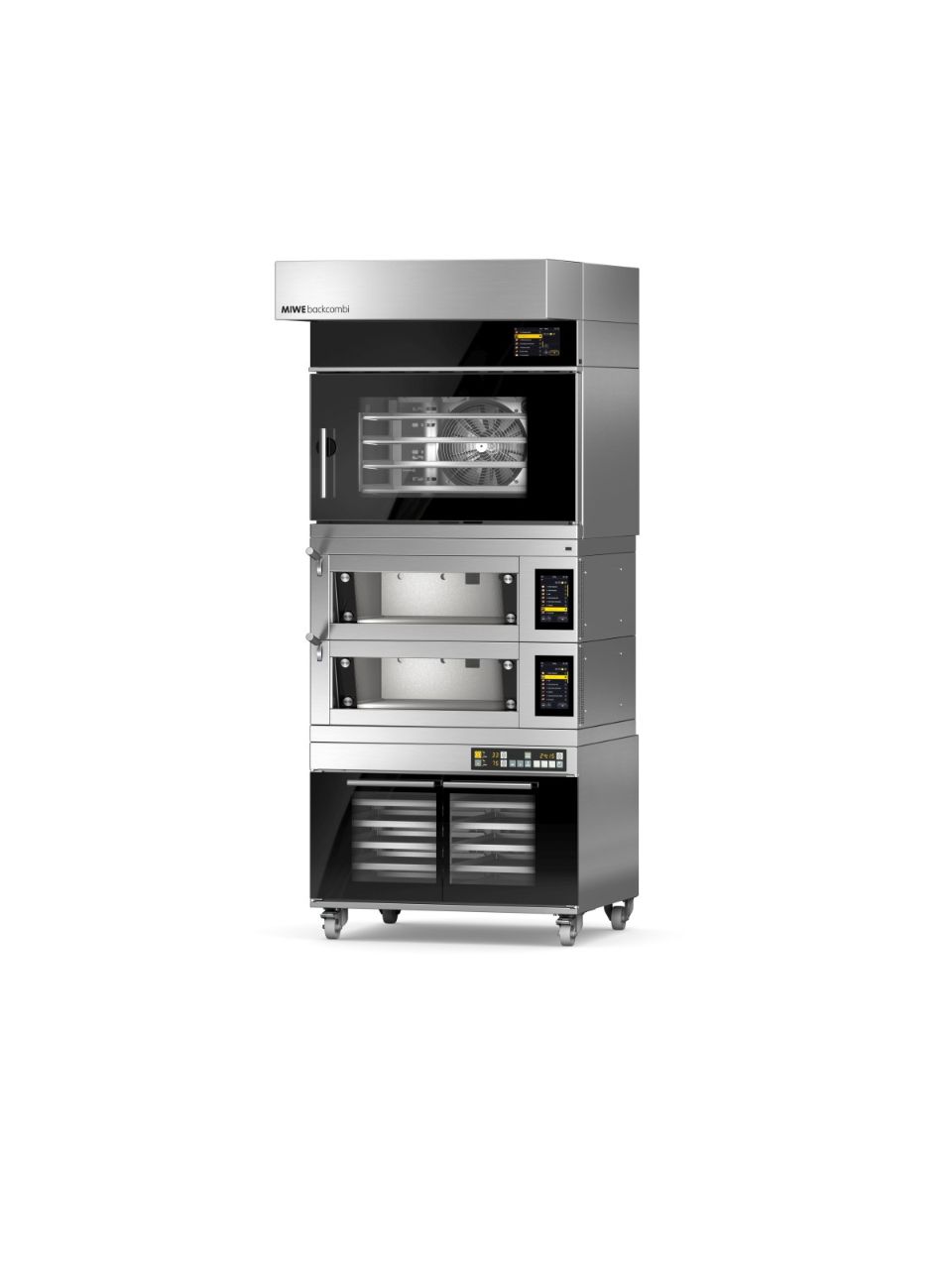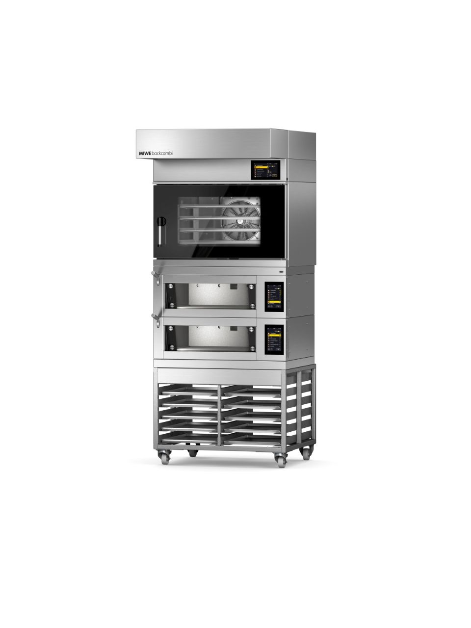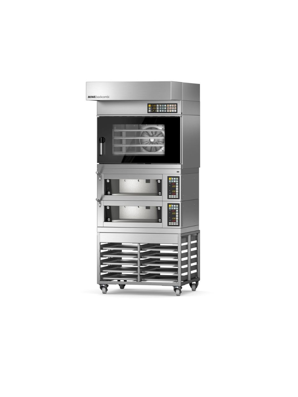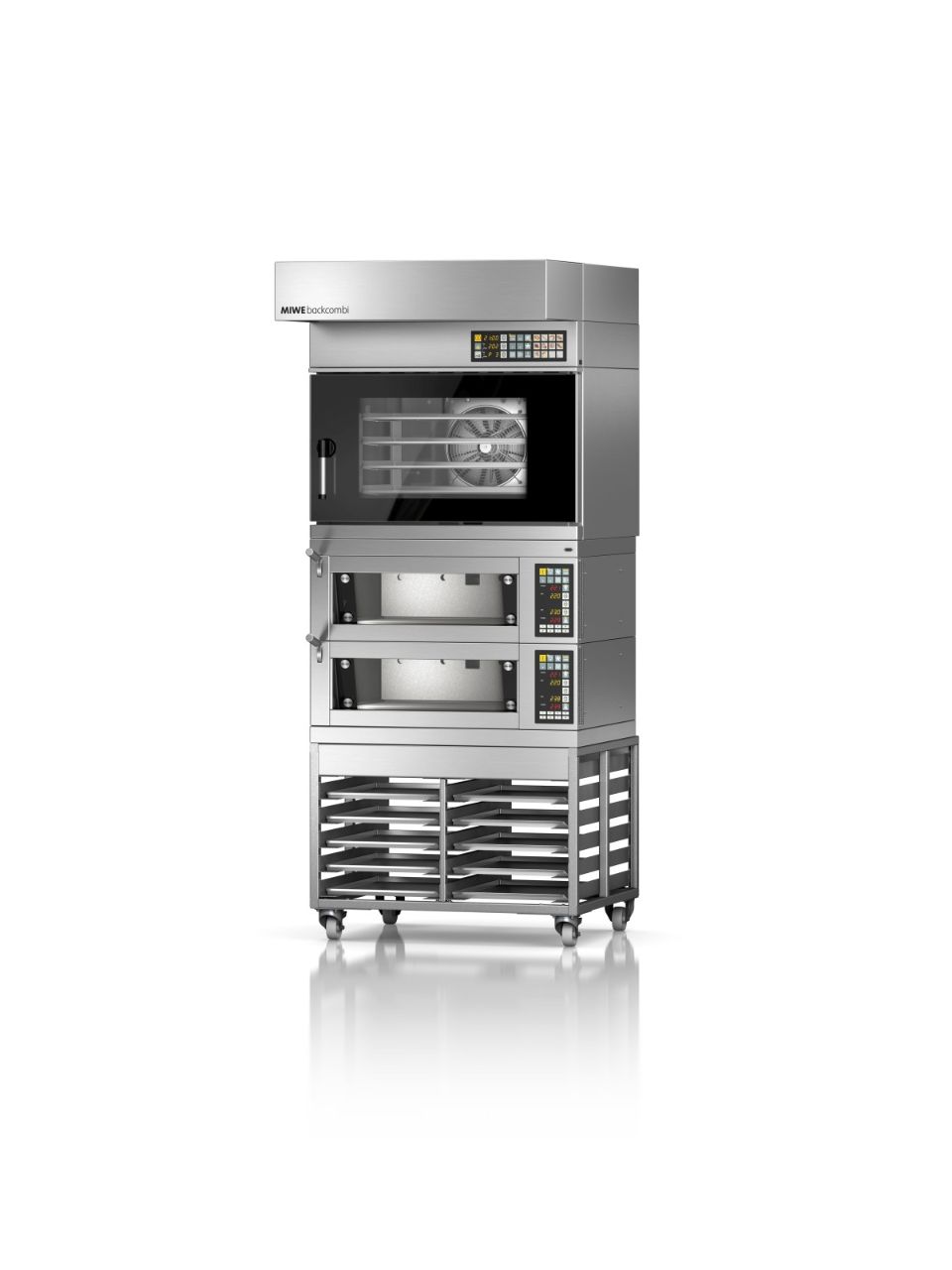 Polecamy indywidualną konfigurację pieca MIWE back combi: piec konwekcyjny w różnej wielkości i z różnym wyposażeniem, różne sterowania, komory w piecu półkowym pojedyncze lub podwójne plus podstawy lub garownie – każde z życzeń zostanie zrealizowane.