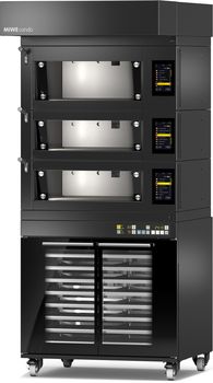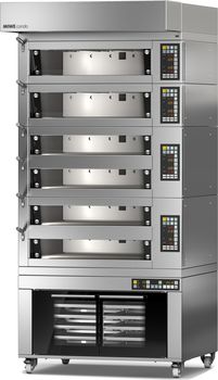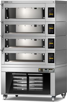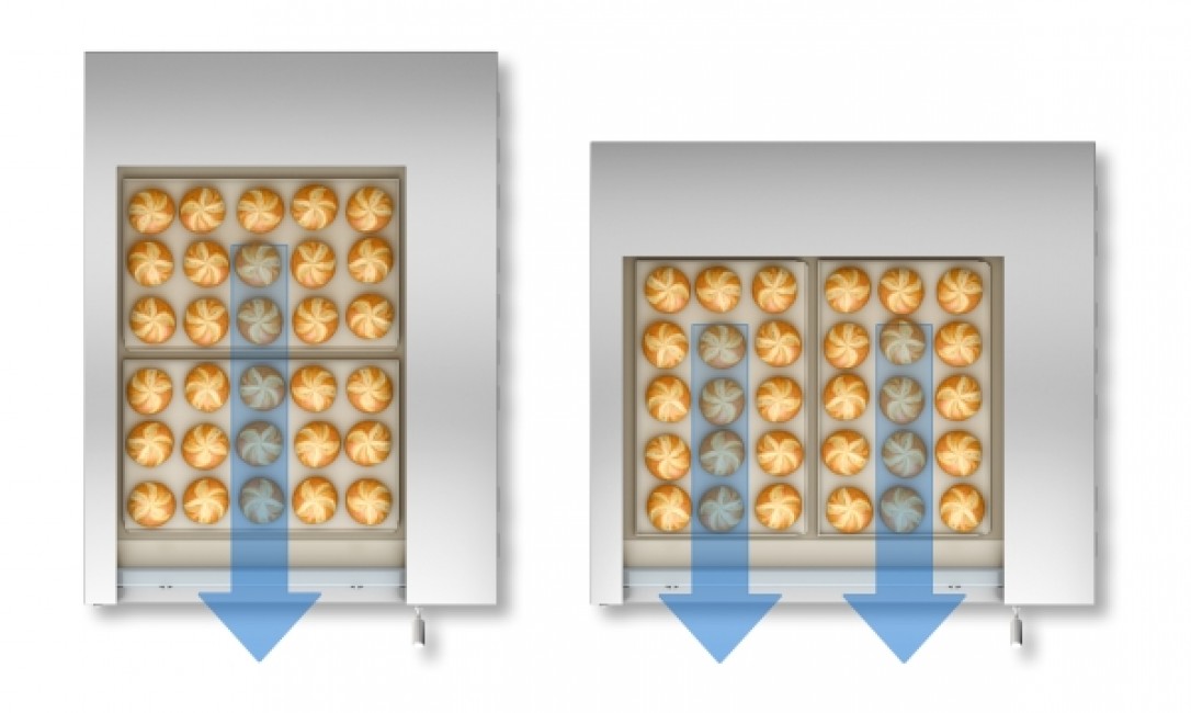 Każda komora posiada własne sterowanie. Niezależność parametrów pieczenia pozwala na wypiek różnego asortymentu w tym samym czasie. Moduł z podwójną komorą. Wygodny w odpieku sklepowym. Wersja ekonomiczna ze względu na 1 sterowanie i podwójną powierzchnię wypiekową. Komory mają niestandardowa wysokość 13 cm, idealne do odpieku bułek, croissantów, rogalików etc. Komory wypiekowe wyłożone płytami kamiennymi.